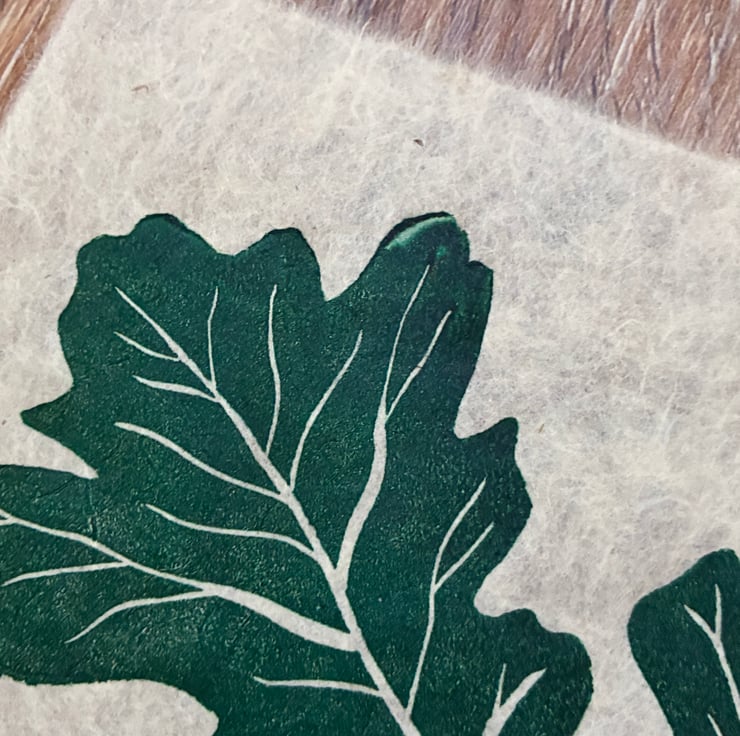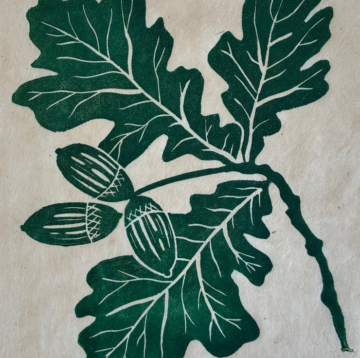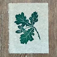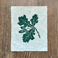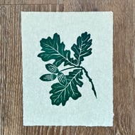 PERFECTLY IMPERFECT Oak leaf and acorn original linocut print in forest green