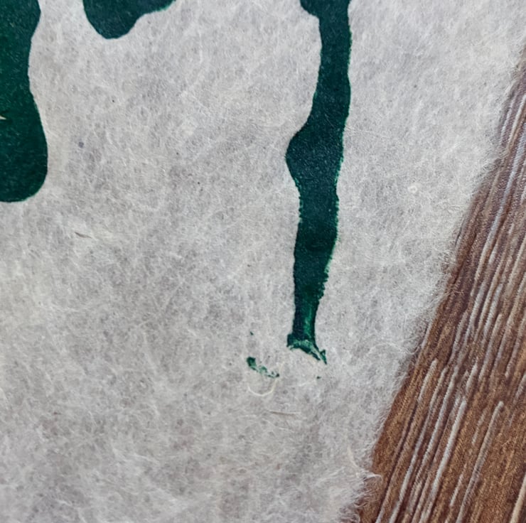 I've listed this original linocut as a second because there is a slight smudge on one of the leaves and a tiny ink mark at the bottom of the stem. The print has a 'salty' appearance, which means the ink is more mottled.Other than that, it looks lovely and you might even enjoy the extra handmade character these tiny quirks give the piece! The print is made on beautiful handmade Himalayan paper, which has a translucent quality where you can see all the natural fibres. It also features a deckled edge that makes each piece feel truly special. The print measures approximately 15 x 20.5 cm, though there may be slight variations in size and texture due to the nature of the handmade paper.