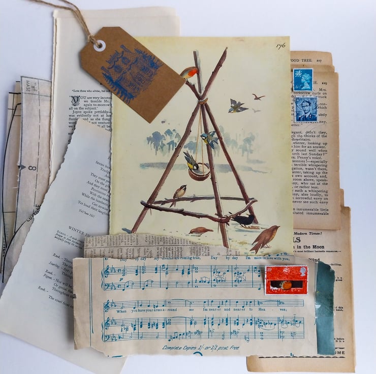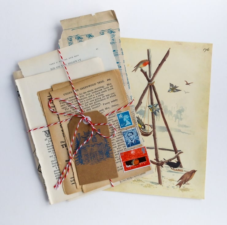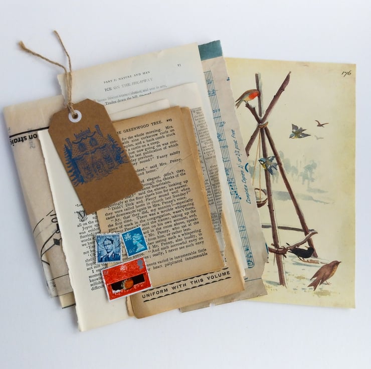 Each pack contains a mix of genuine vintage pages and illustrations, sourced from old books, appendices, sheet music, stamps and other paper treasures.