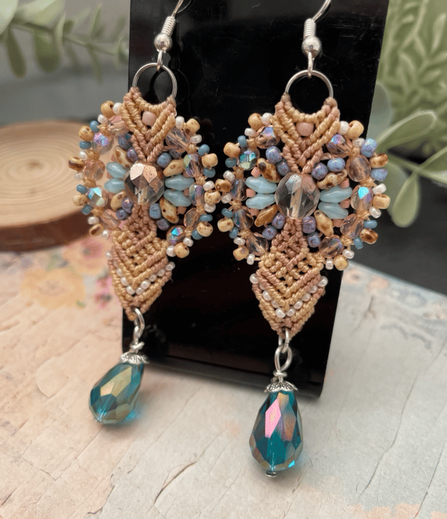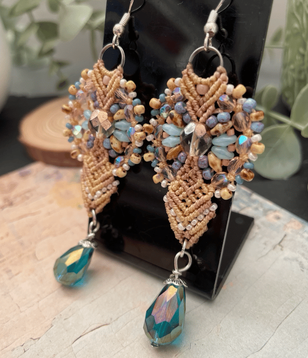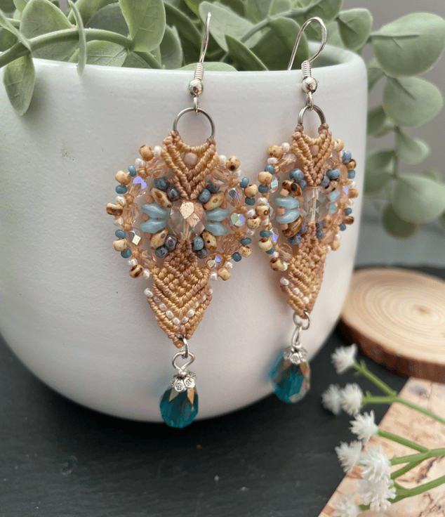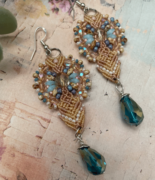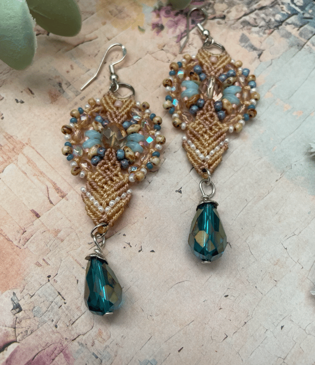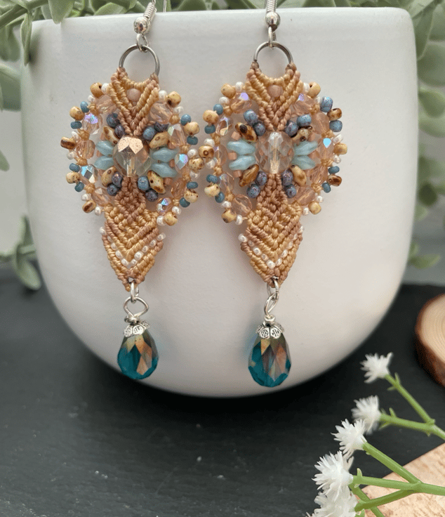 A beautiful pair of unique micro macrame beaded earrings handcrafted in my Kent studio .