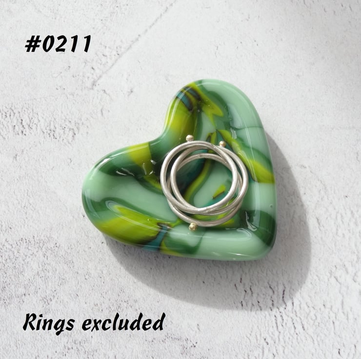 This bright and cheerful small fused glass heart shaped ring dish is handcrafted by myself in Wiltshire from COE90 Bullseye glass, creating a unique, eye-catching piece. Please note the rings are not included.