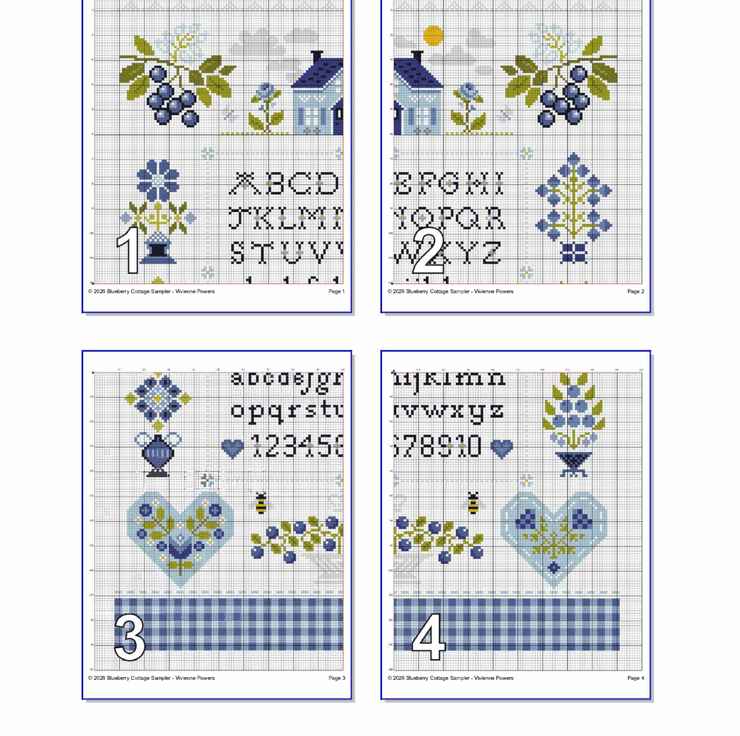308 - Blueberry Cottage Cross Stitch Pattern Quaker Alphabet Sampler (PDF Chart)