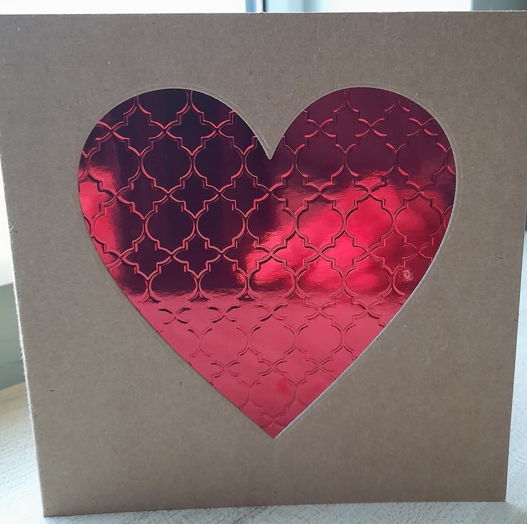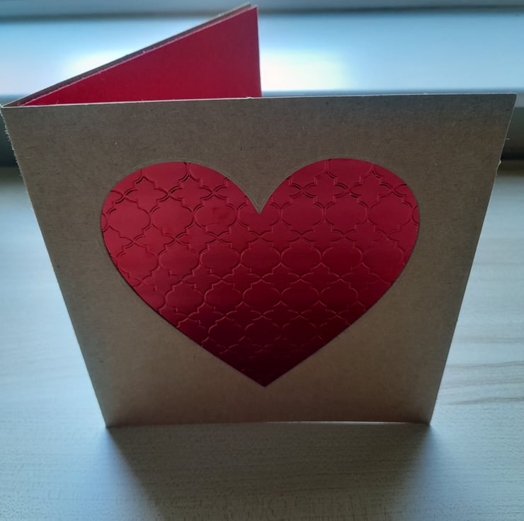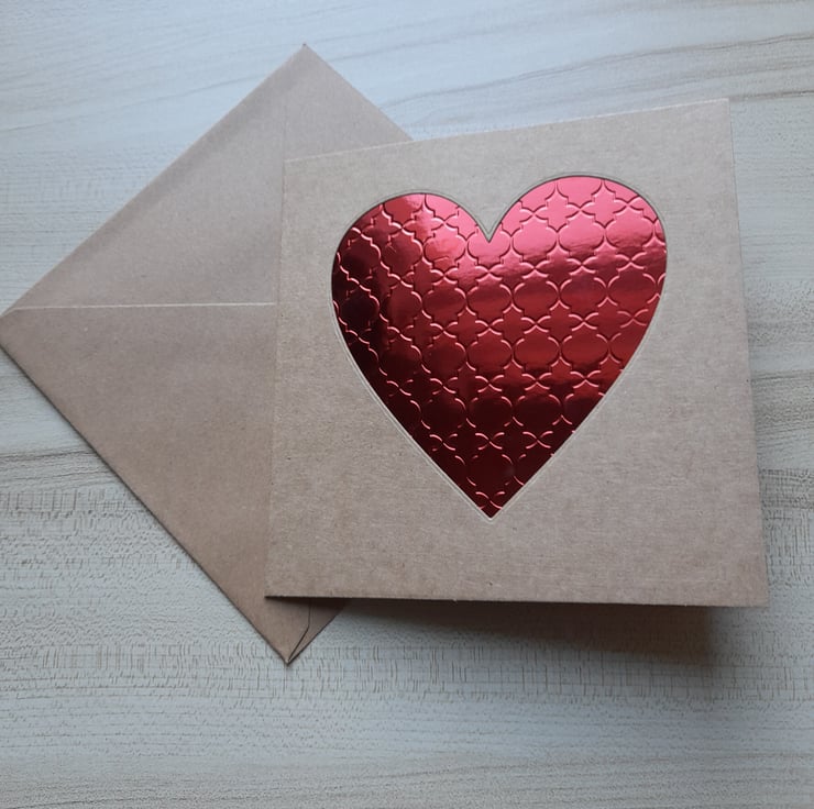 This contemporary and elegant Valentine's card design combines a tactile, textured red foil heart cut into a solid kraft card base, and is finished with a red paper insert for your Valentine's message.