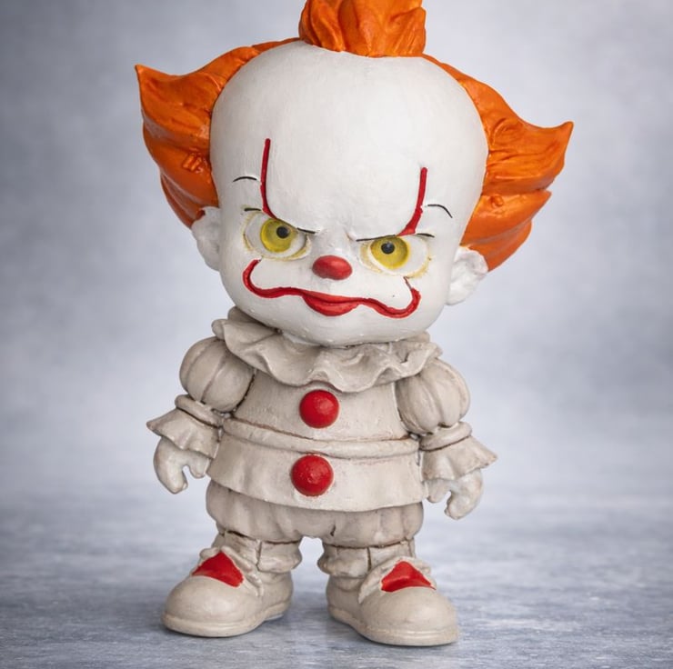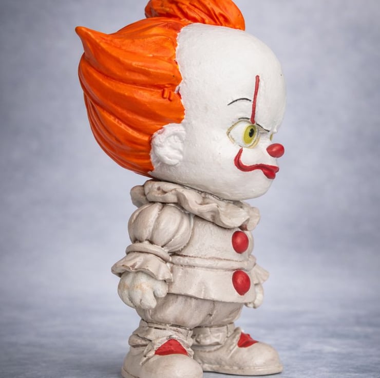 This horror-inspired figurine is a custom made, handcrafted piece, designed and produced with attention to detail from start to finish. Inspired by iconic horror clown aesthetics, it captures a playful yet sinister character style while remaining an original decorative artwork.