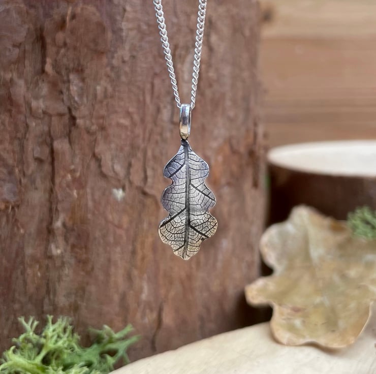 Inspired by the quiet beauty of the woodland, this necklace celebrates the natural shape and texture of a real oak leaf.