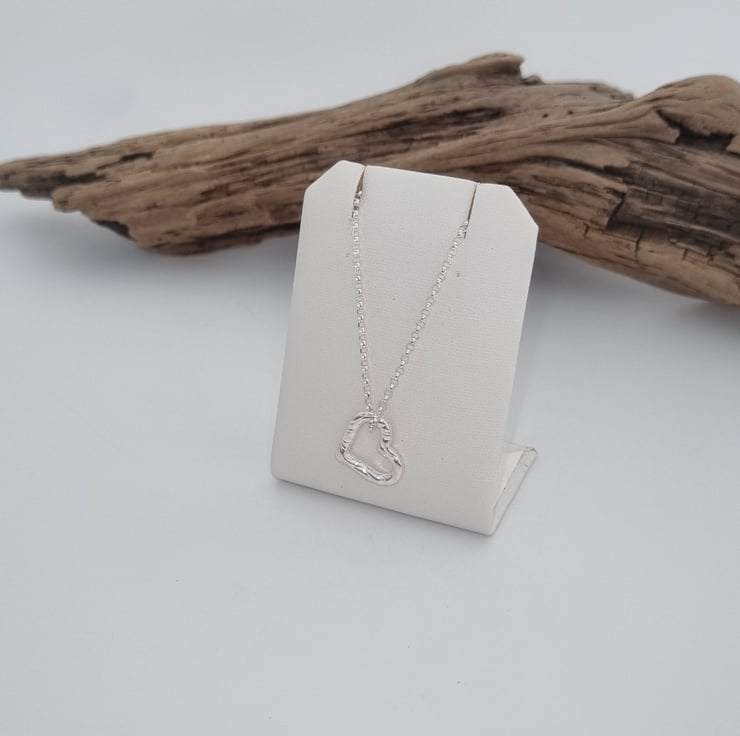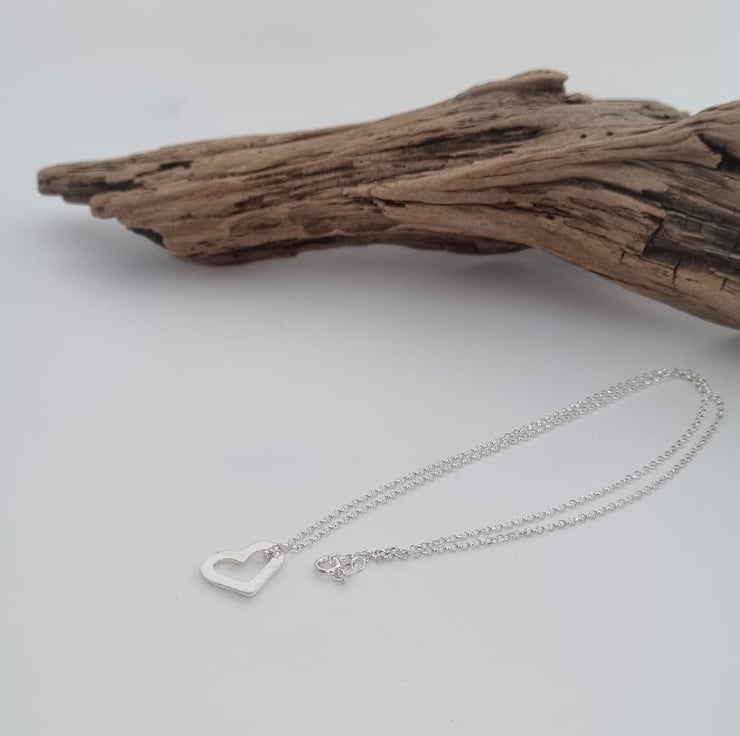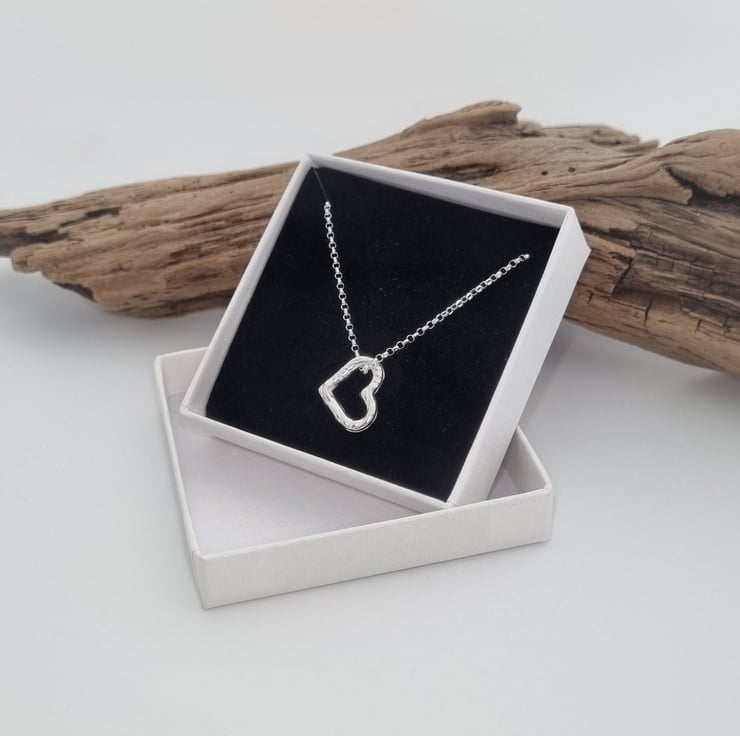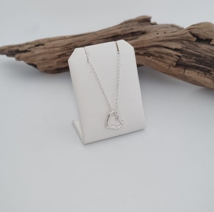 Fine silver heart pendant with a sterling silver chain.