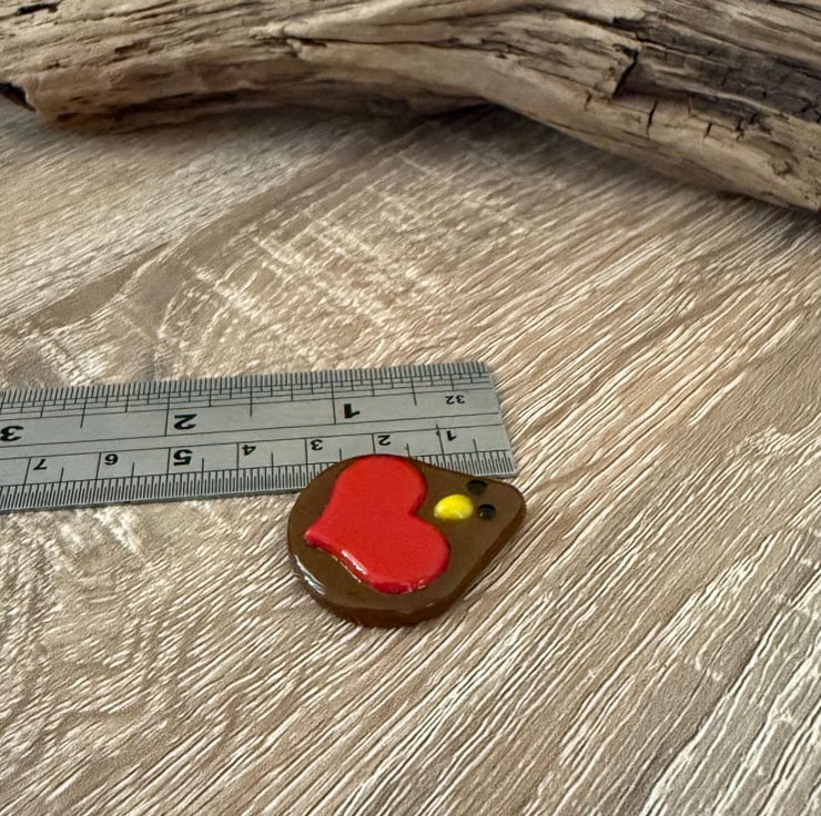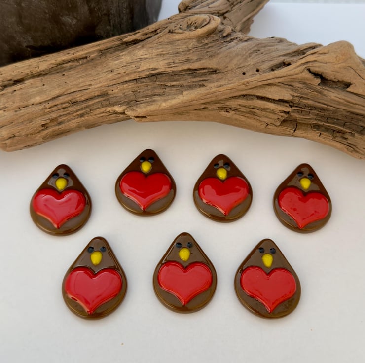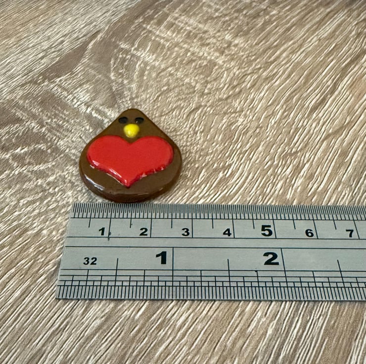 The finished robins are approximately 3.5cm x 2.5cm. Each one is individually handmade to the same design, but being handmade will have small differences. I think that this adds to their appeal and makes every little robin unique.