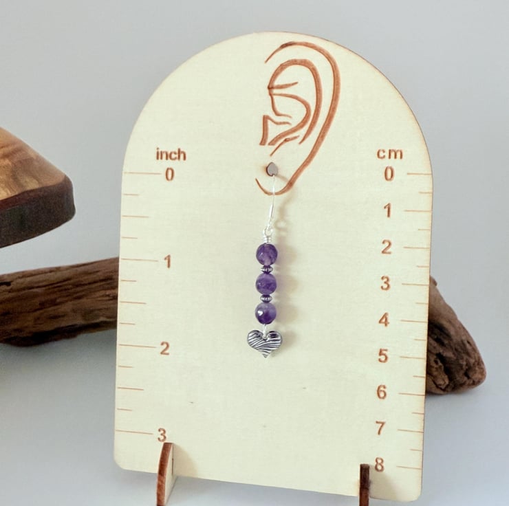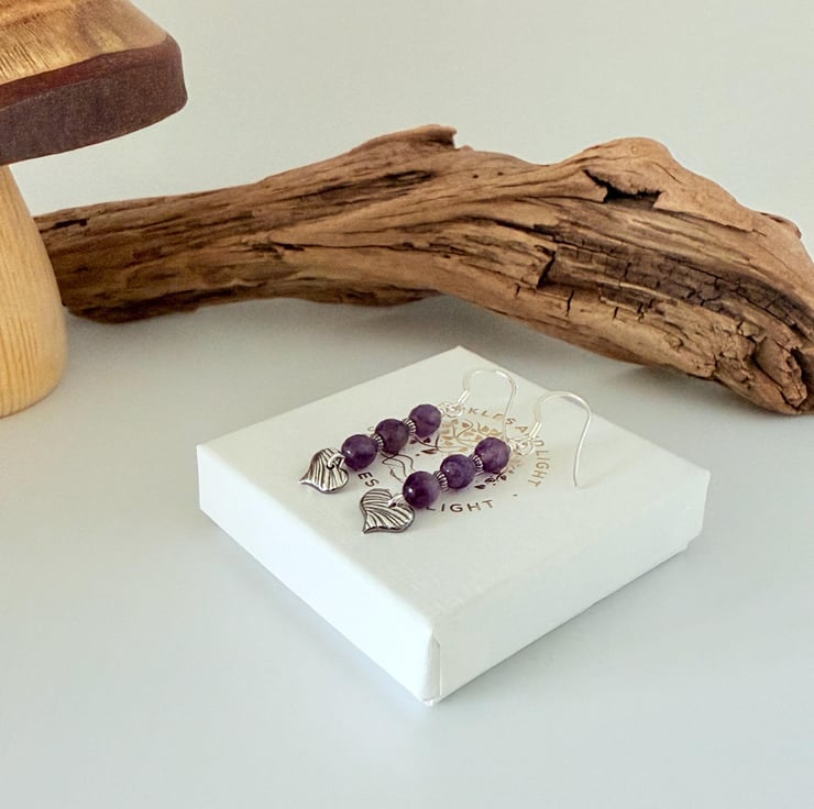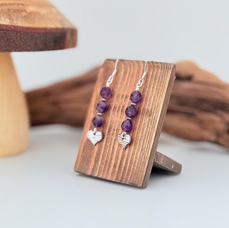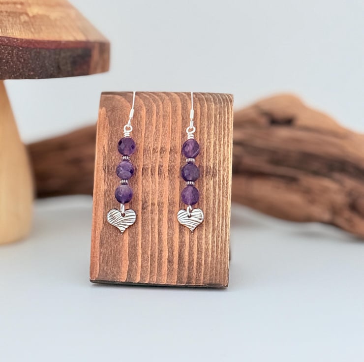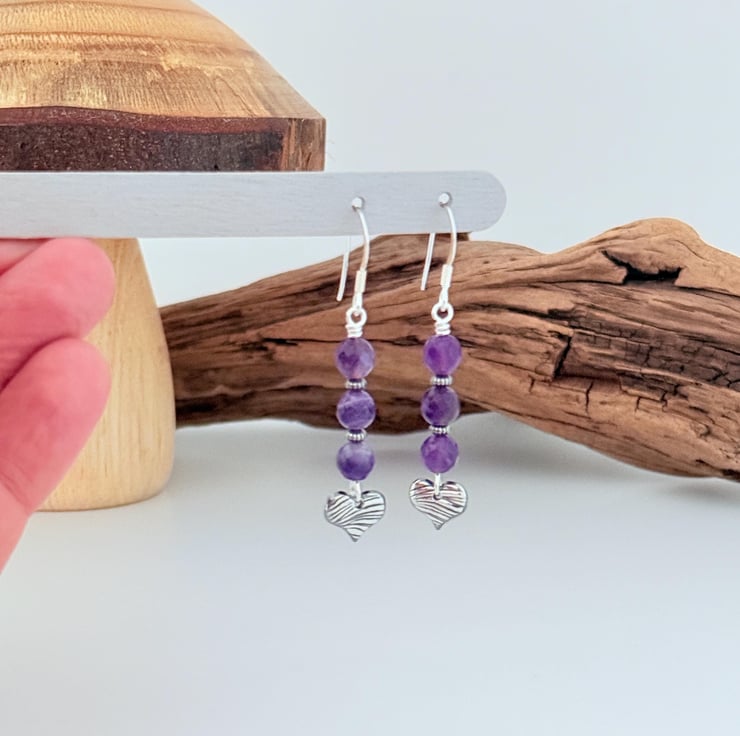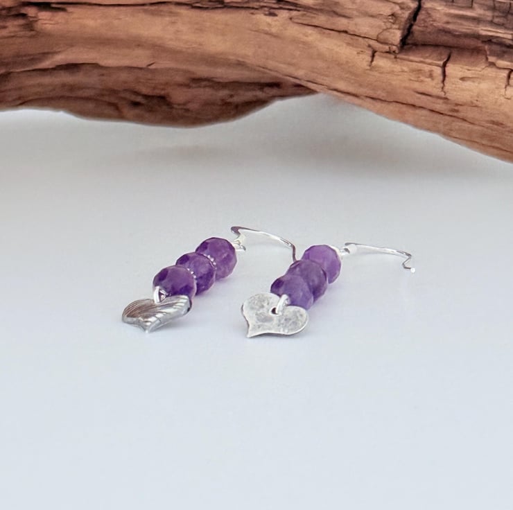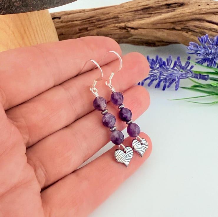 Amethyst and Fine Silver Heart Earrings