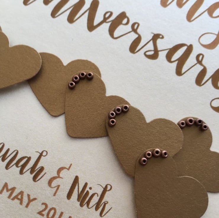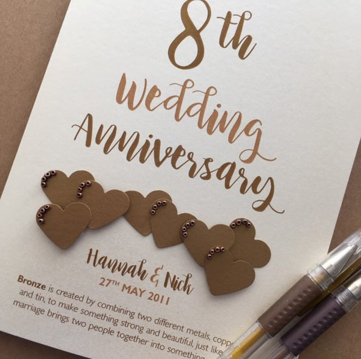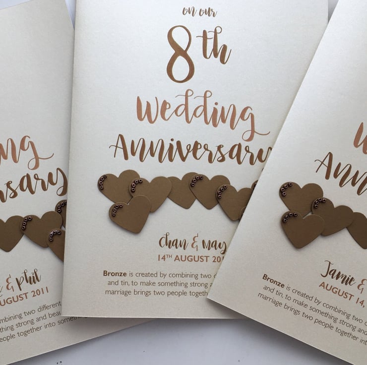 A beautiful keepsake anniversary card for a Bronze (8th) wedding anniversary. Hand crafted to order with the utmost care and attention.