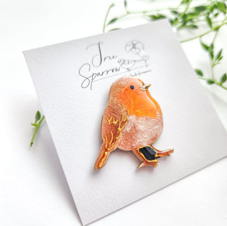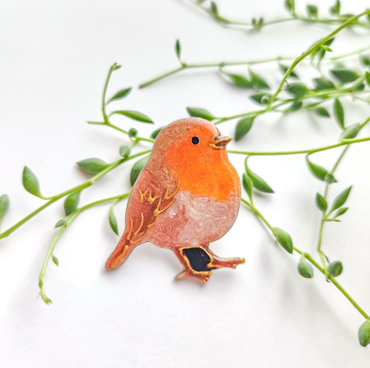 A robin brooch is hand-shaped, hand-painted and finished with care by hand.
