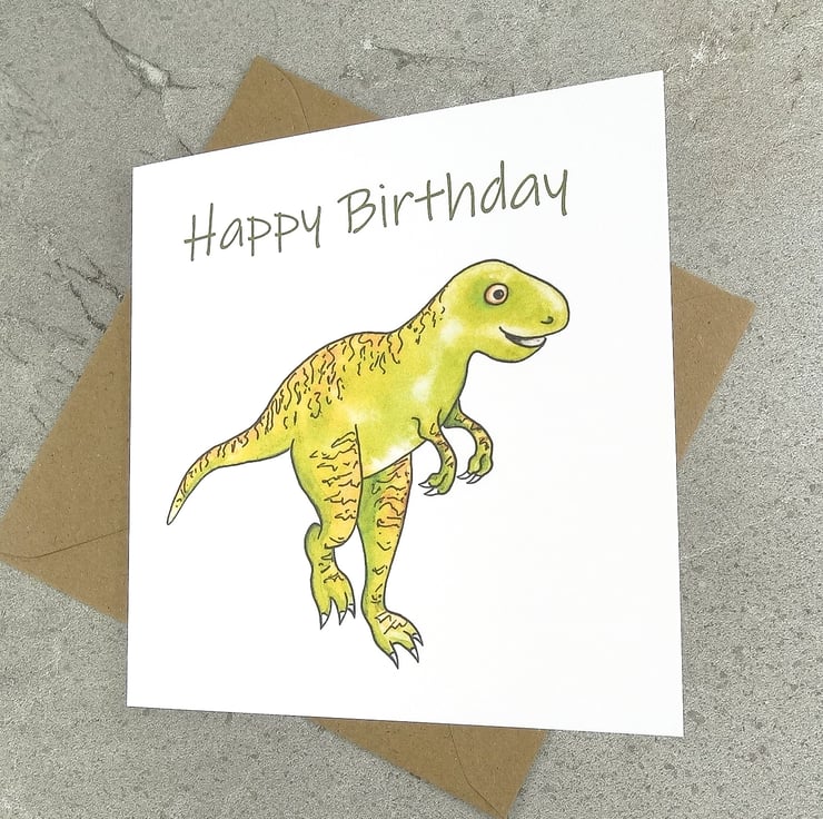 My T-Rex Dinosaur Birthday card has been printed with my original artwork on 'New' matt white texture FSC approved 280gsm card and comes with a brown kraft envelope protected in a clear biodegradable bag.