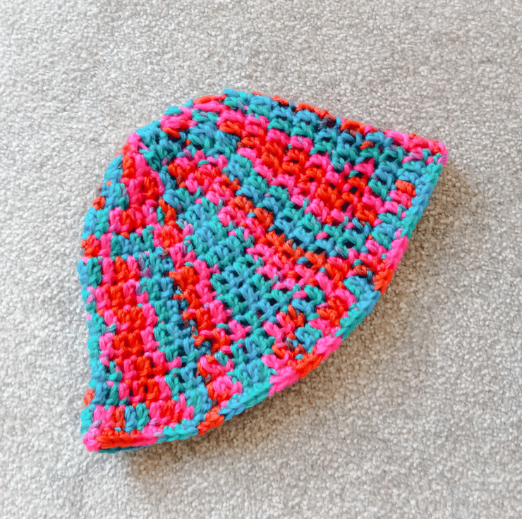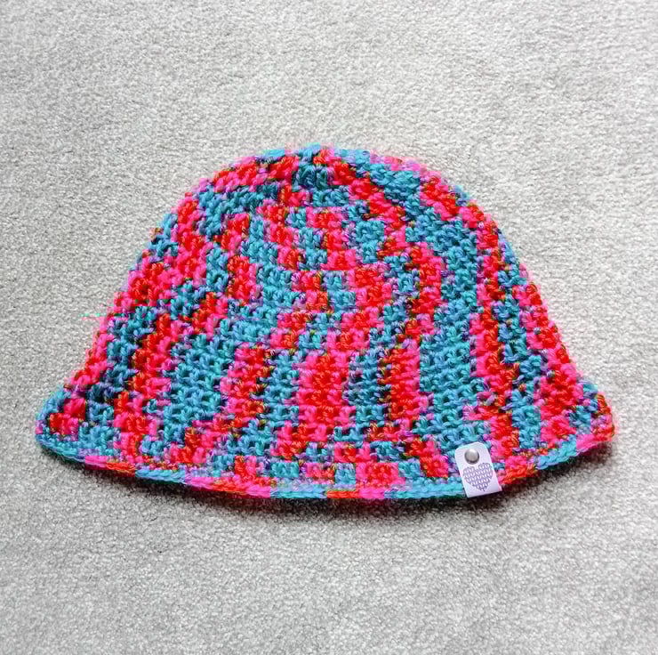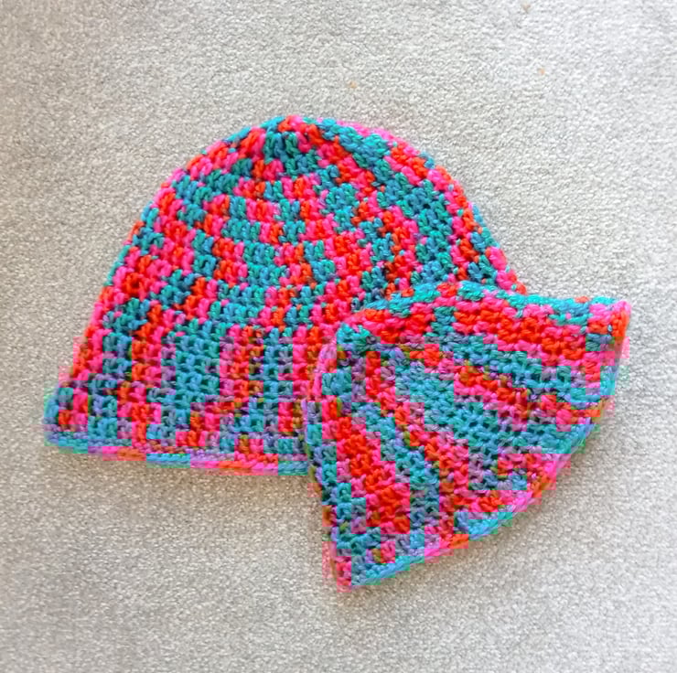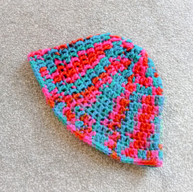 To fit adult: Head size: 56 cm or 22 inches. Crown diameter: 14 cm or 5.5 inches. The hat is crochet in double knitting yarn using 5 mm crochet hook.