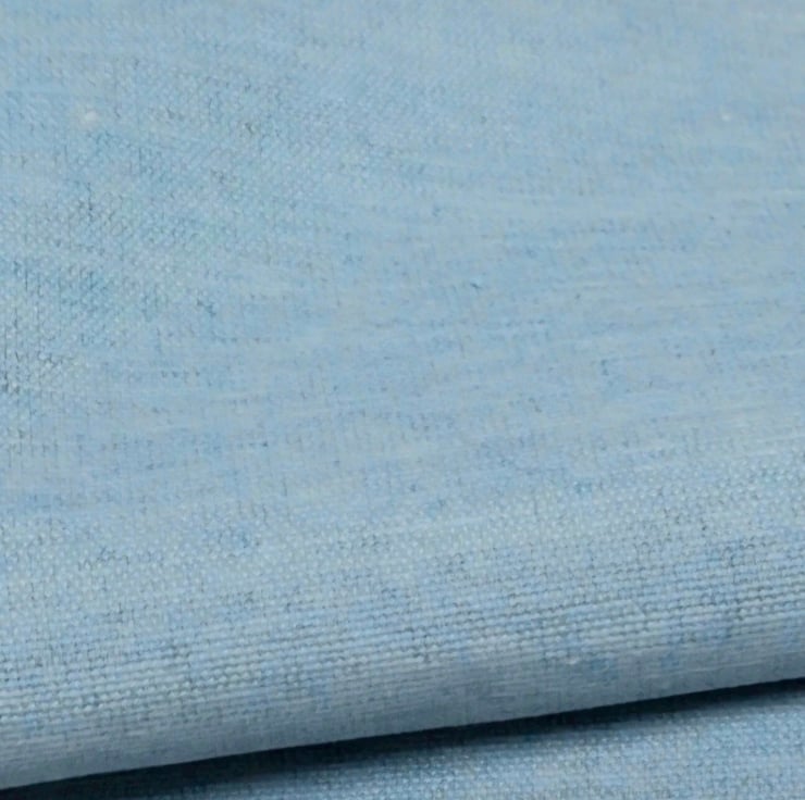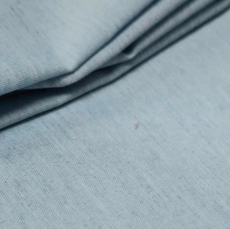 Pale blue chambray style woven fabric with a soft matte finish and subtle cross thread texture. The fabric has a lightweight yet practical handle, making it suitable for both garments and home sewing projects.