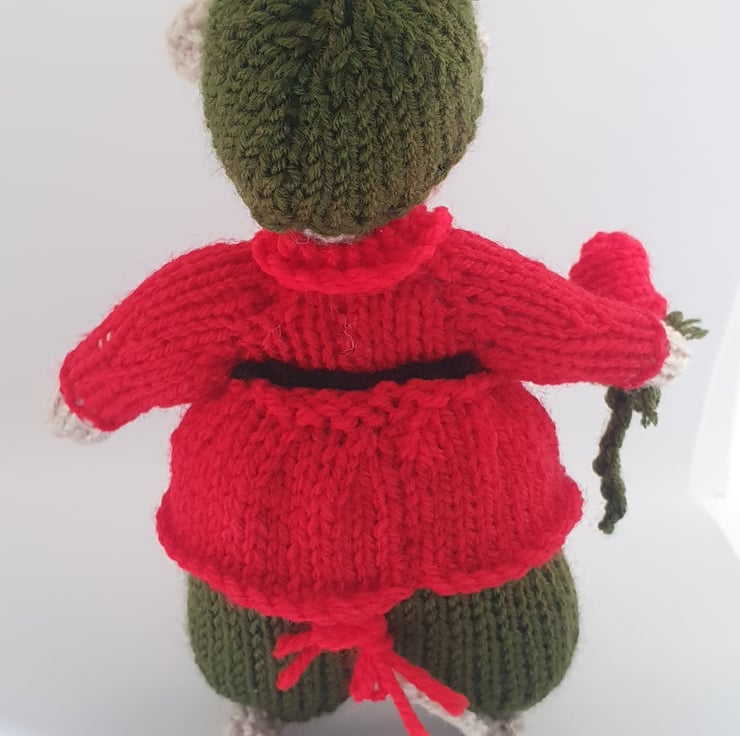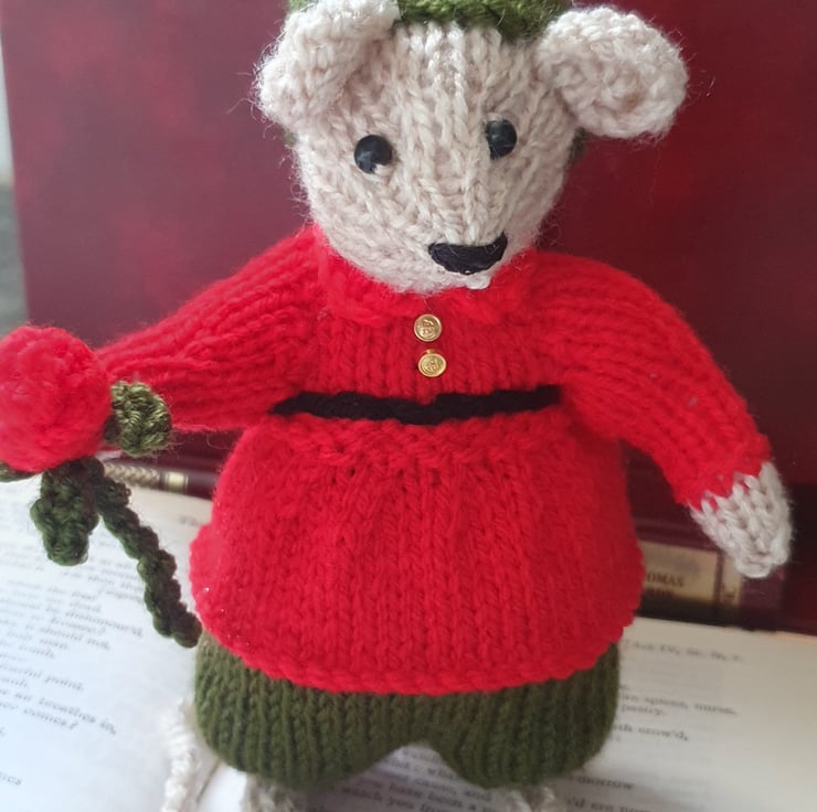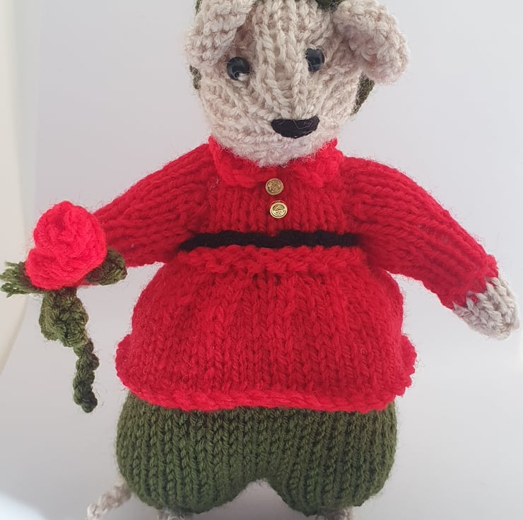 Romeo is a sweet little mouse who holds a single red rose. He is dressed in green and red in a renaissance style!
