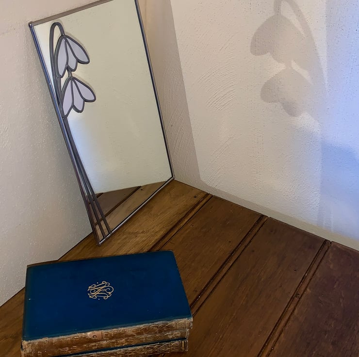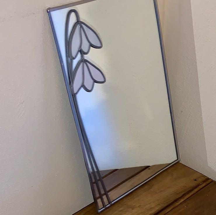 Slim, small mirror in the style of The "Mackintosh Snowdrop" design draws from Charles Rennie Mackintosh's Art Nouveau and Art Deco-inspired artwork. With beautiful lead work.