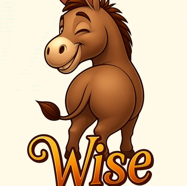Add a cheeky, winking donkey paired with a playful word rendered in elegant, flowing script.