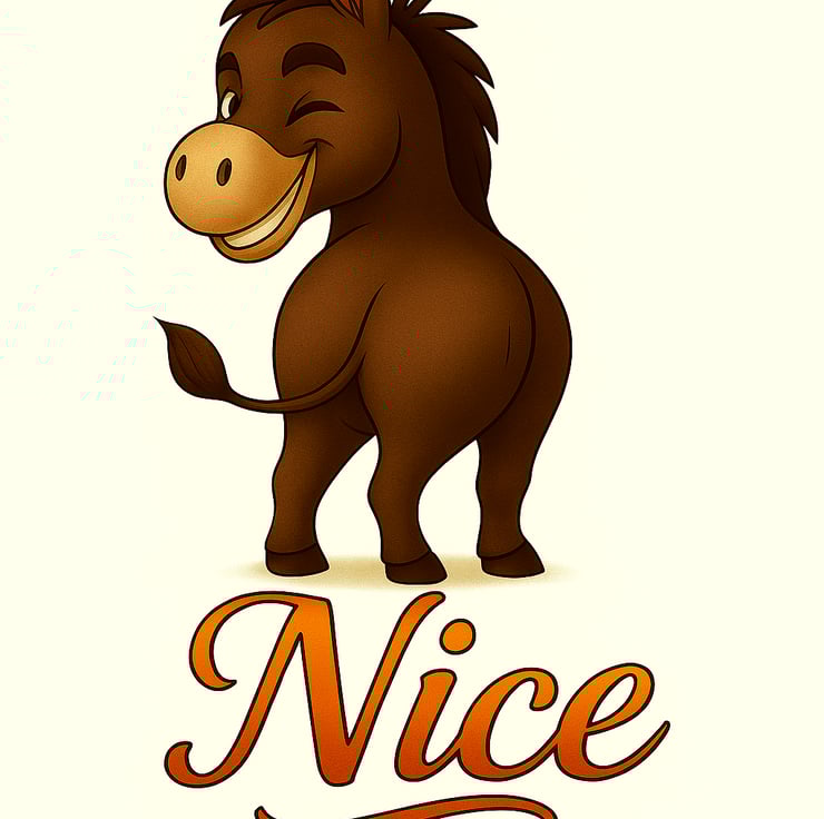 Add a cheeky, winking donkey paired with a playful word rendered in elegant, flowing script.