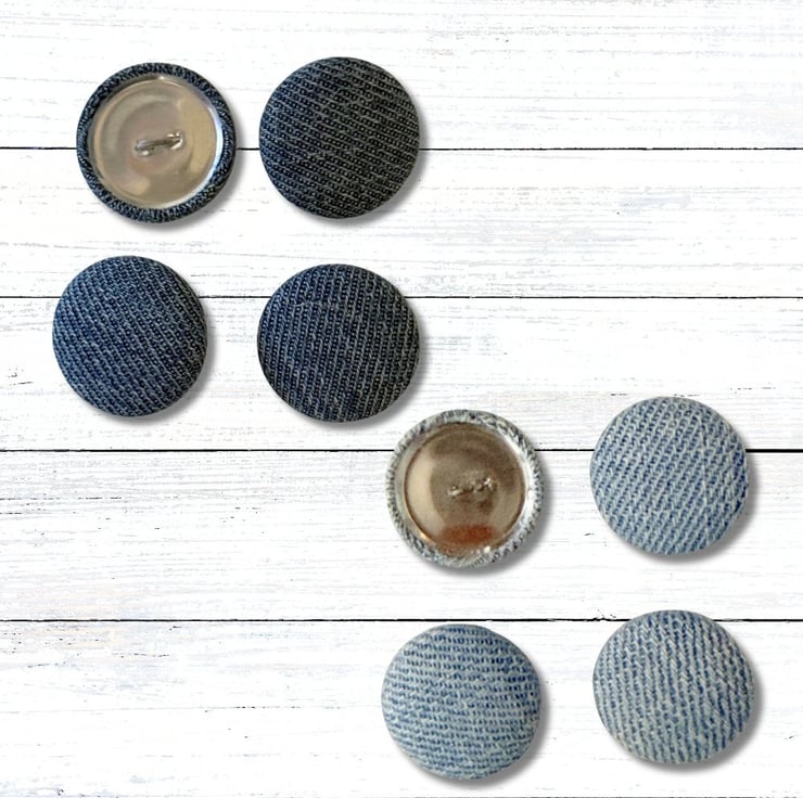 Each button is carefully crafted by hand using recycled fabrics and button blanks, making them ideal for cardigans, cushions, bags, garments, and craft projects.