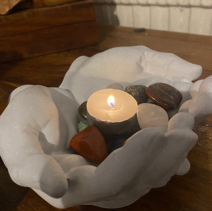 Handmade offering hands, cast as a single sculptural piece and designed to hold light with intention.