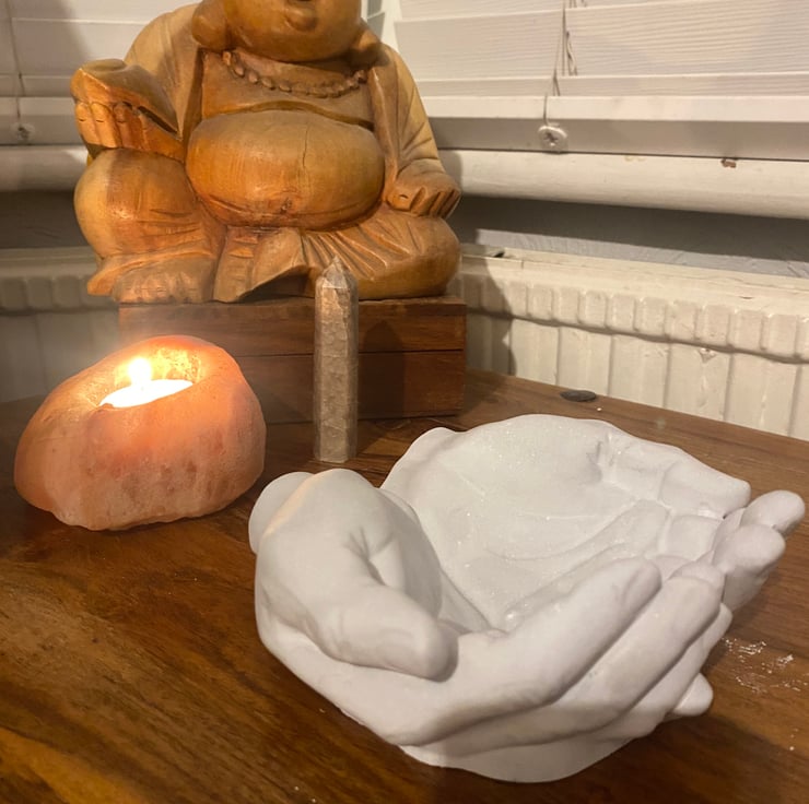 The offering hands were designed as a small altar space – somewhere to place light, intention, or remembrance. A gentle reminder that even in busy lives, there can be moments where we are supported, grounded, and allowed to simply be.