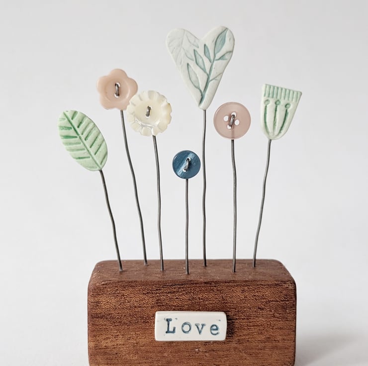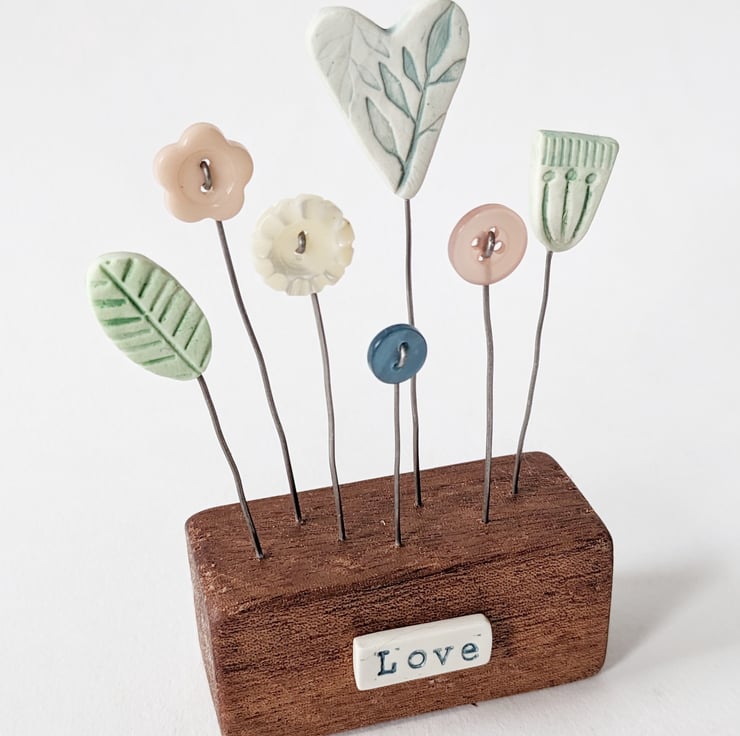 Little vintage and wooden buttons complete the pretty garden.