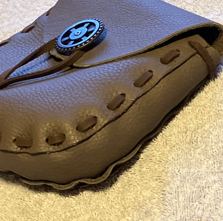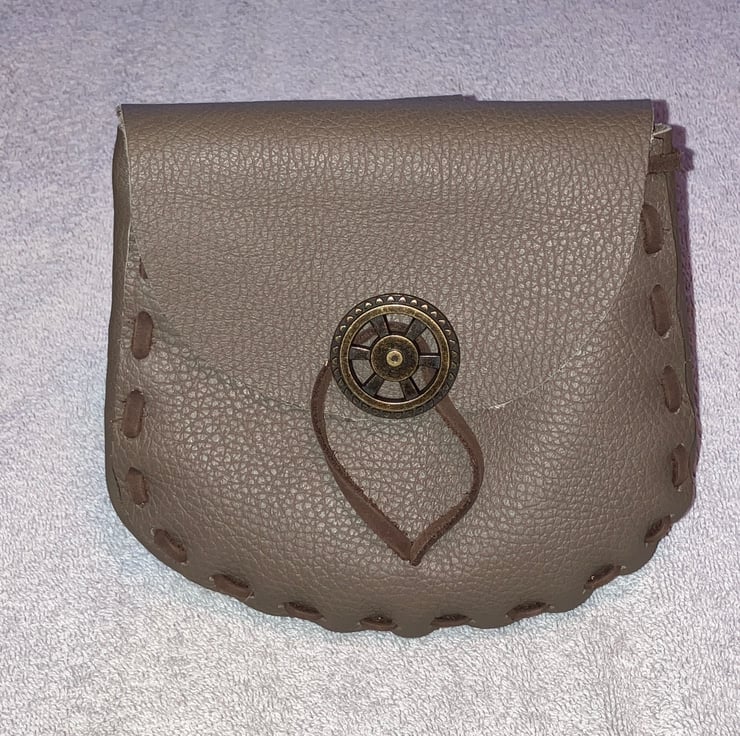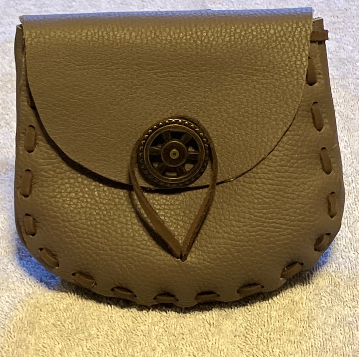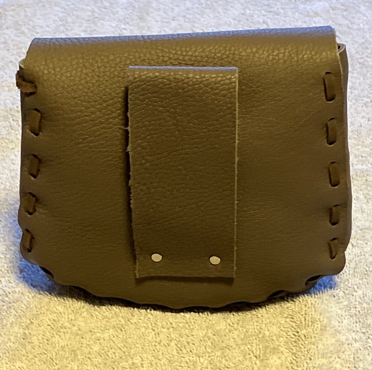 Olive Brown Coloured Leather Pouch (Medieval in Style) // Gusset and belt loop are the same Olive Brown colour