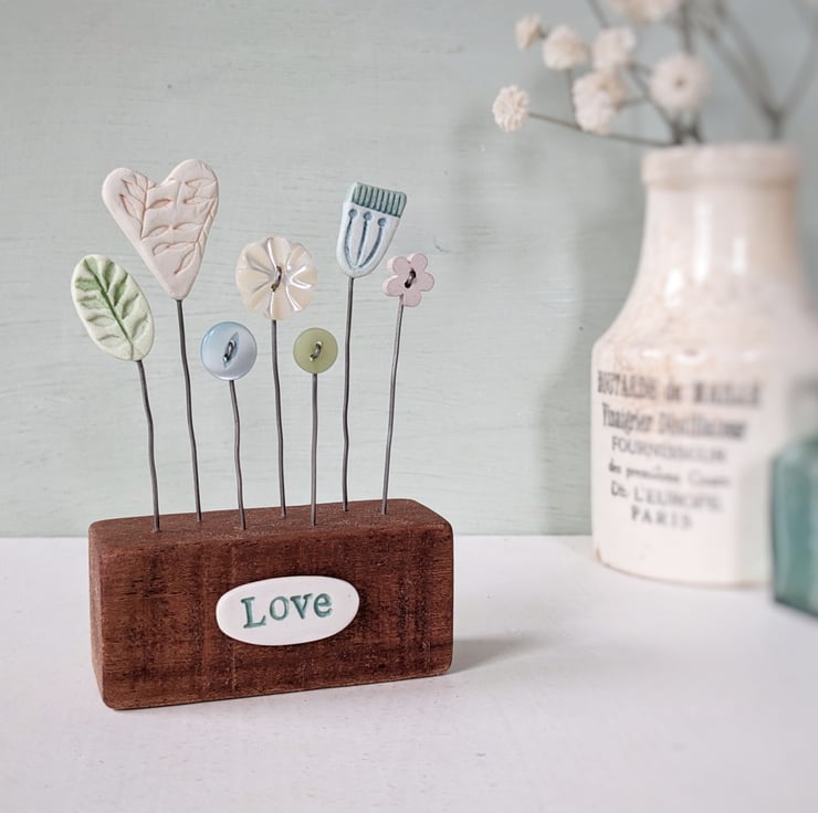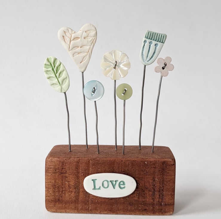 Little vintage and wooden buttons complete the pretty garden.