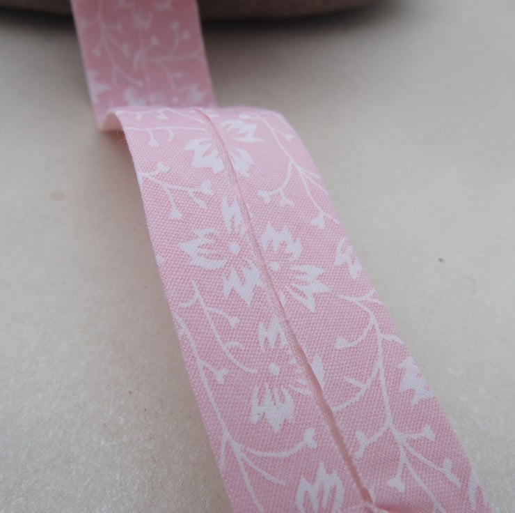 5m Handmade 1 Inch Pink Flowered Cotton Bias Binding