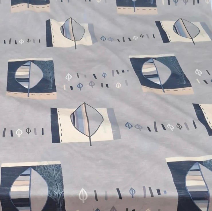 1 Metre Acosta Blue & Lilac Leaf Design Polycotton Curtain Fabric 1.4m Wide