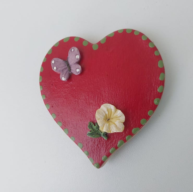 Red Heart Purple Butterfly Yellow Flower Fridge Magnet
