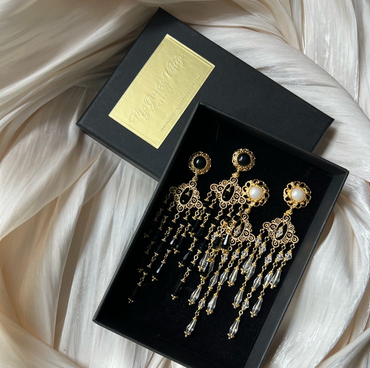 All pieces are individually handmade by my grandma vintage team. Every earring a unique !