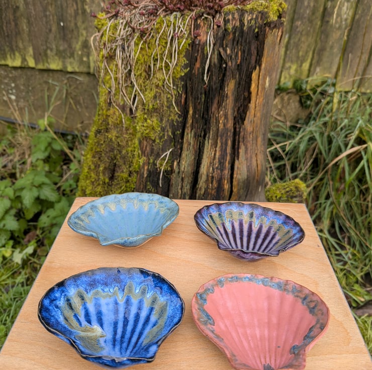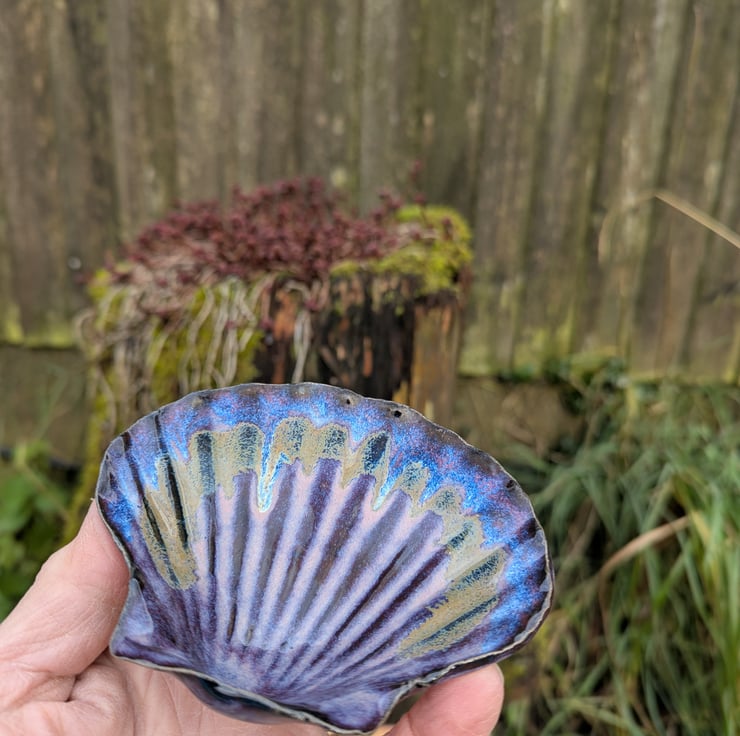 Scallop shell shaped trinket dish or teabag dish, handmade and hand glazed.