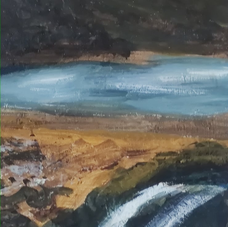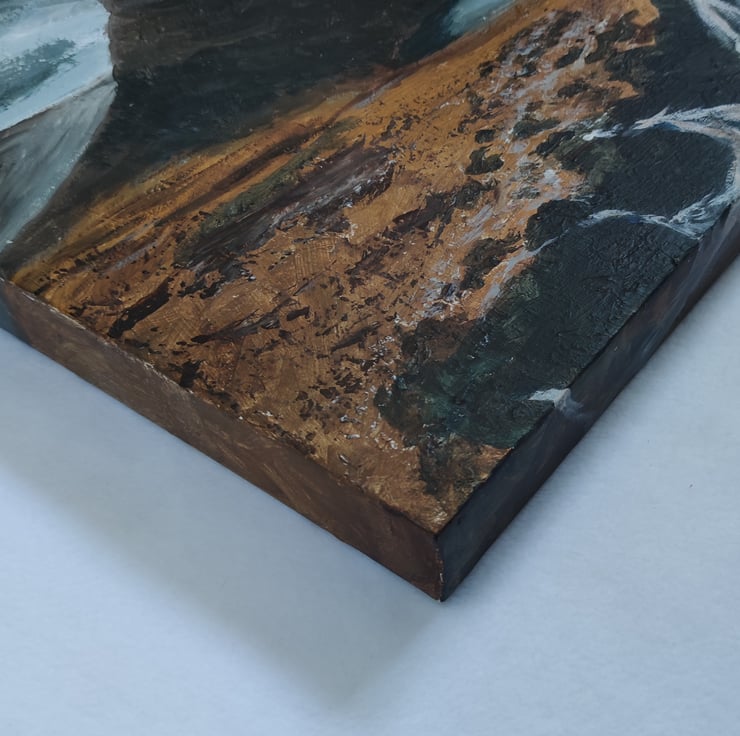 Dimensions: 40x40cm and 4cm deep, painted onto a deep wood backed stretched canvas. It is strung and ready to hang even if you decided not to have it framed.