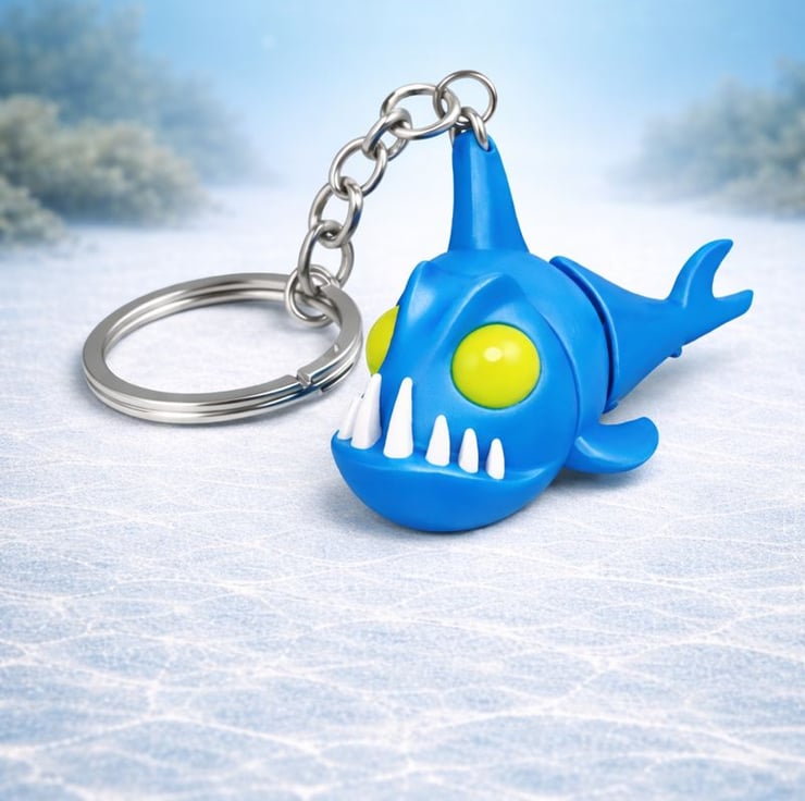 This anglerfish keyring is a custom made, handcrafted accessory, inspired by the distinctive deep sea anglerfish. Designed to be both eye catching and practical, it features bold sculpted details including the iconic lure, sharp teeth and rounded body shape, making it a fun and characterful addition to keys, bags or backpacks.