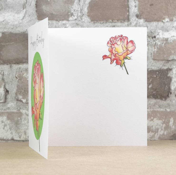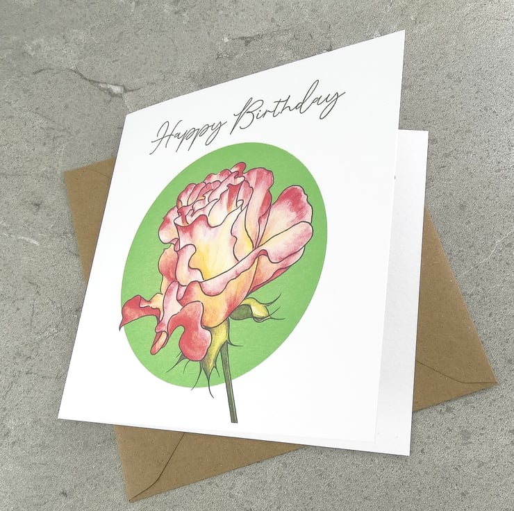 My Rose Birthday card has been printed with my original artwork on 'New' white texture FSC approved 280gsm card and comes with a brown kraft envelope protected in a clear biodegradable bag.
