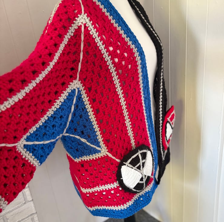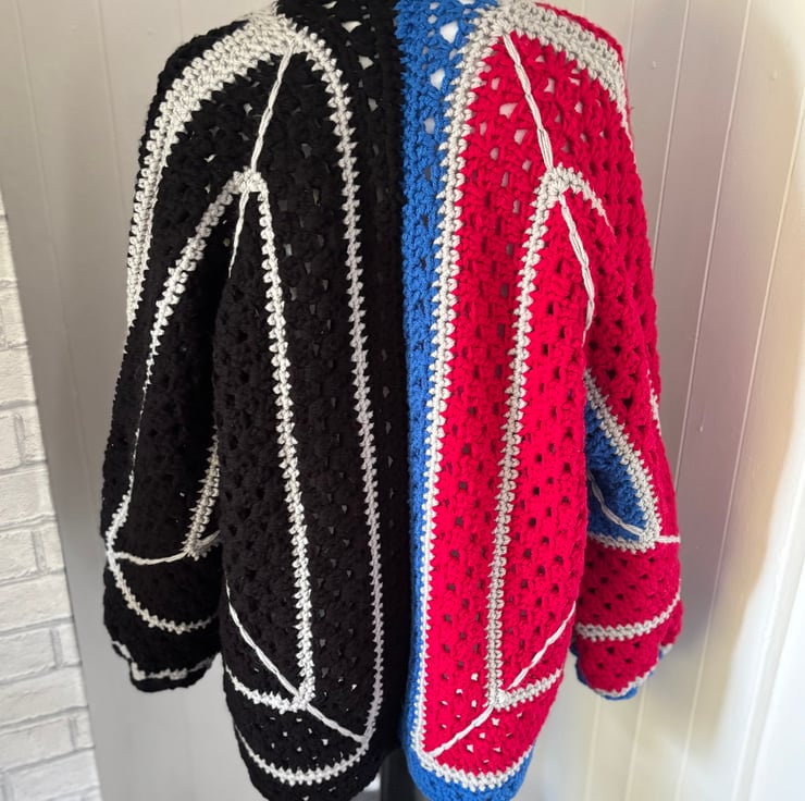 Made using 2 strands of women institute acrylic yarn in various colours ,which make it quite chunky