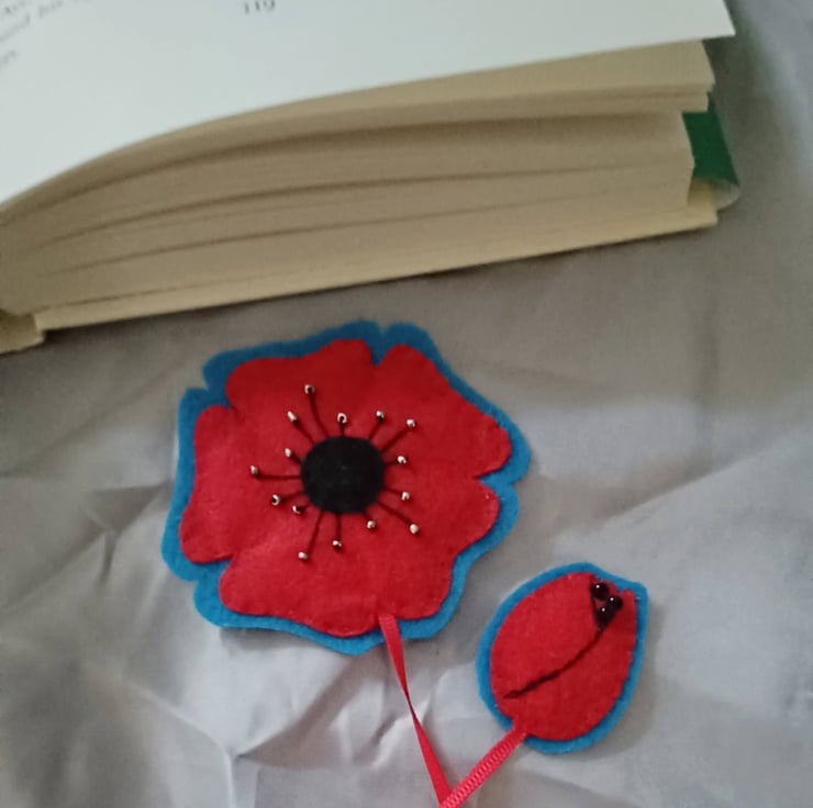 Handmade with love is this gorgeous, tactile and vibrant felt embroidered poppy bookmark with beads. Very lightly padded which adds to its softness and cosy to hold while reading.