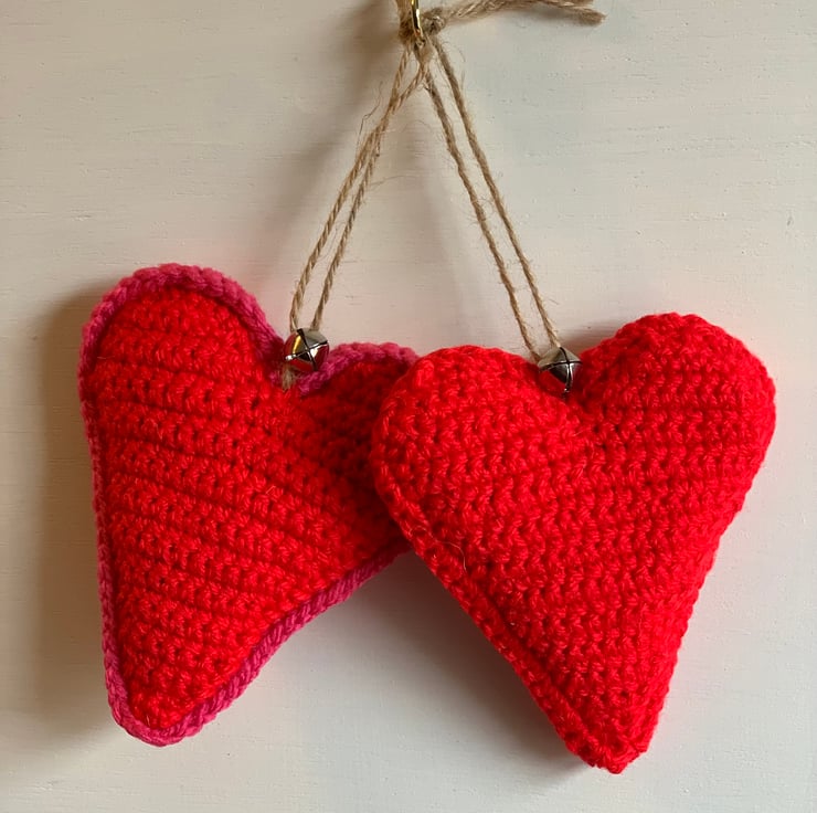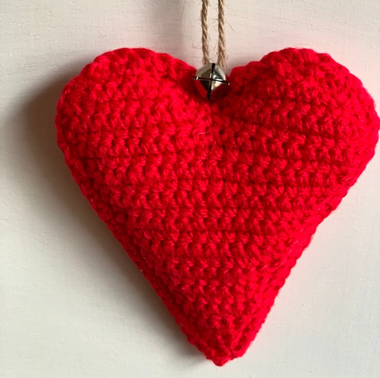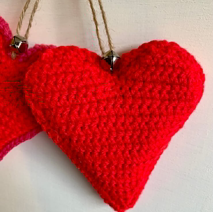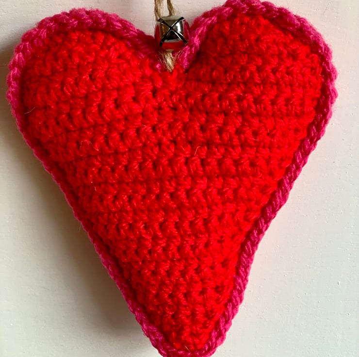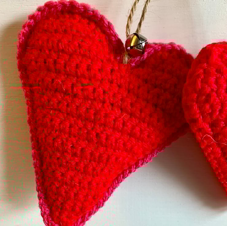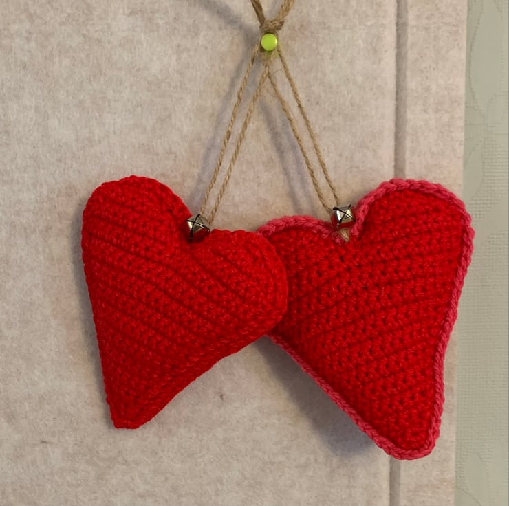 This hanging heart makes the perfect gift for Valentine’s Day or just as a token of love. Each heart is hand crocheted using acrylic yarn. Available in red or red with pink edges. Make your choice via the drop down menu.