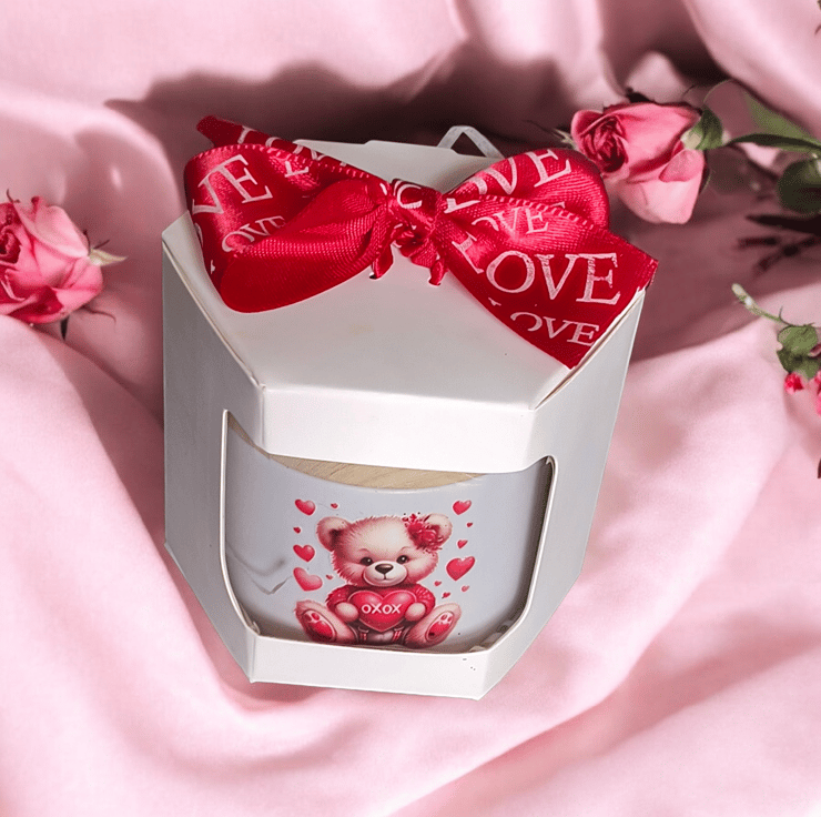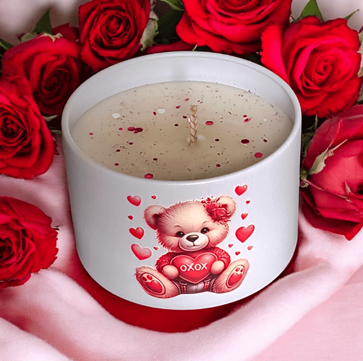 This handmade scented gift ready candle is the perfect Valentines Day gift for her. With a romantic cranberry scent and a white soy wax material sprinkled with glitter this candle creates a calming and intimate atmosphere in the living room. The scented candle from km heaven scent candles is a beautiful addition to any home, adding a touch of romance and warmth. Made in the United Kingdom, this unique and charming piece is ideal for those who appreciate handmade, scented products.