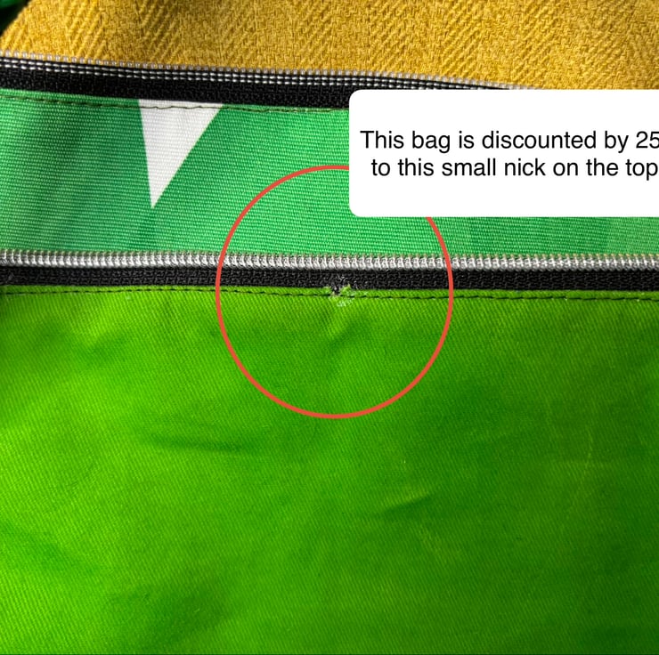 NB - there is a small nick in the top of the bag which is highlighted in the final photo. This is really only noticeable on close inspection, but the bag is discounted by 25% in acknowledgment that it is a ‘second’.