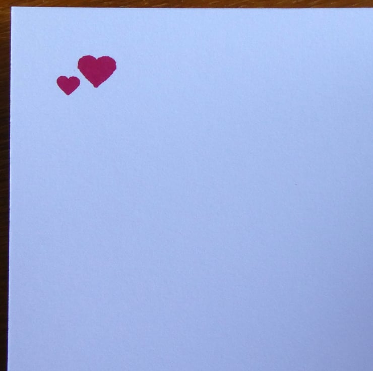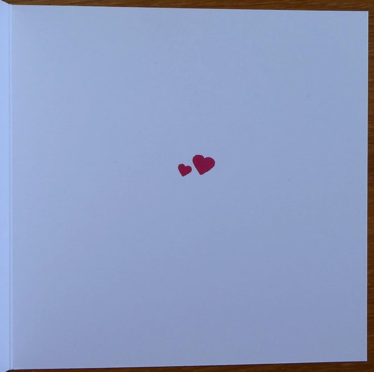 The card has been finished with a frame of black card and mounted onto a white card, red hearts have been hand stamped on the inside for a finishing touch, leaving space for your own message.