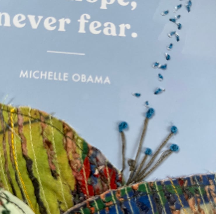 A lovely little bit of positivity stitched onto a paper background.