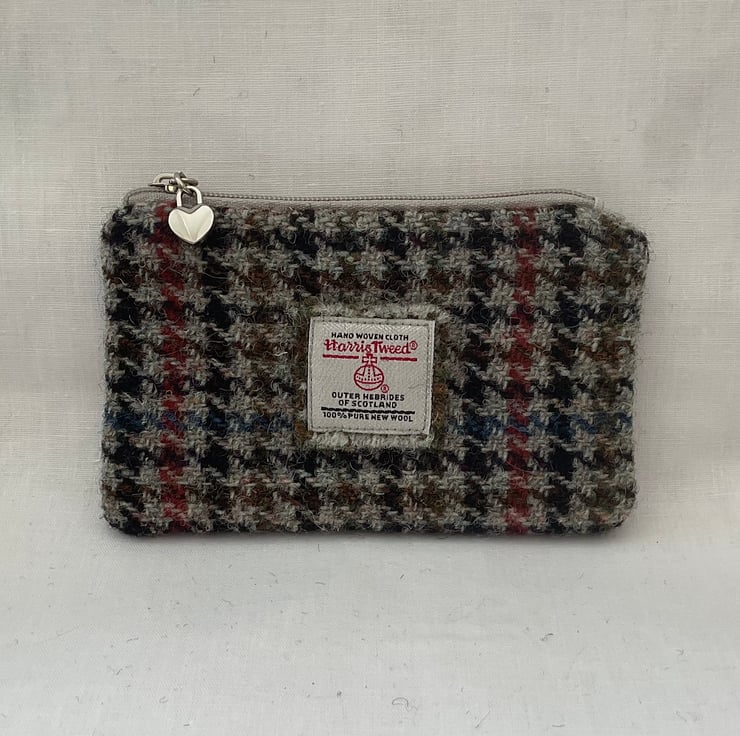 Authentic Harris Tweed fabric zipped coin purse by Ellie’s Handbags with sewn on authenticity label and heart zipper pull