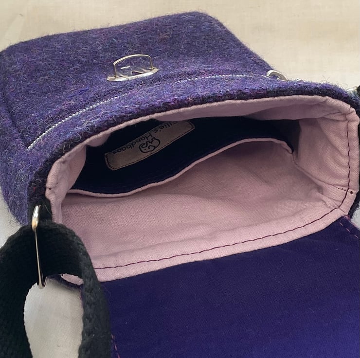 Harris Tweed small crossbody bag with adjustable strap handmade by Ellie’s handbags