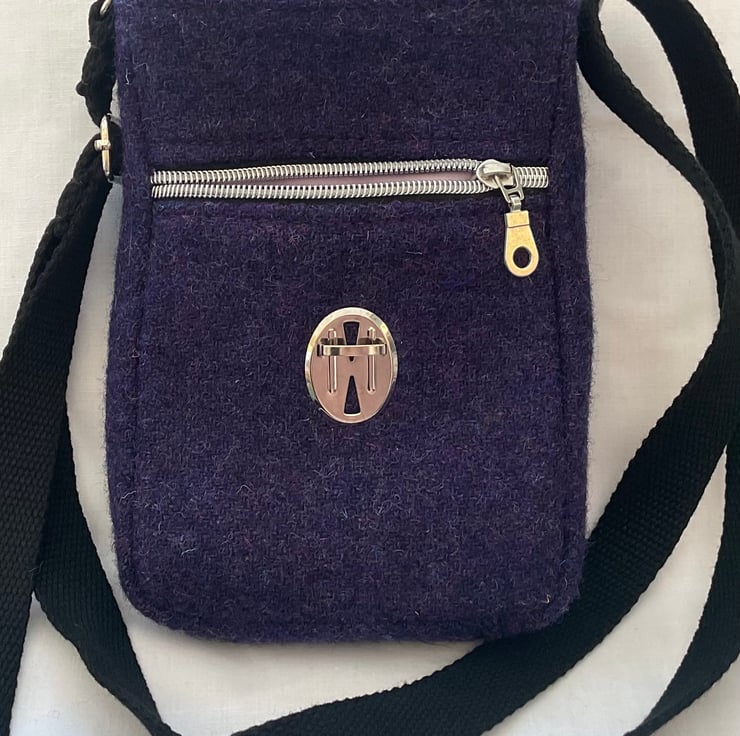 Authentic Scottish Wool Harris Tweed Small Mini Phone Crossbody Shoulder Bag