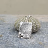 This pendant is inspired by my love of the coast. Measuring approx 2.5cm x 1.5cm, it is cast in sterling silver from a piece of Norfolk driftwood and a little tube rivet has been inserted in the top to hold the bail.