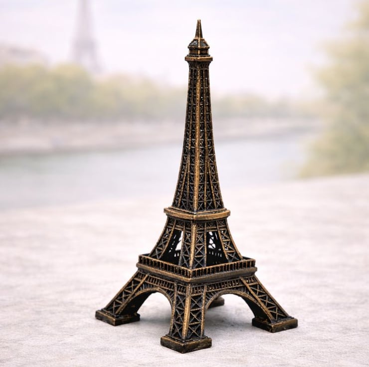 This miniature Eiffel Tower is a handcrafted decorative model, carefully designed and produced with attention to detail from start to finish. Each piece is 3D printed to order and individually hand finished, giving it a distinctive, hand-painted look that highlights the intricate lattice structure and architectural details.