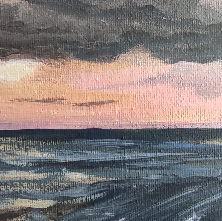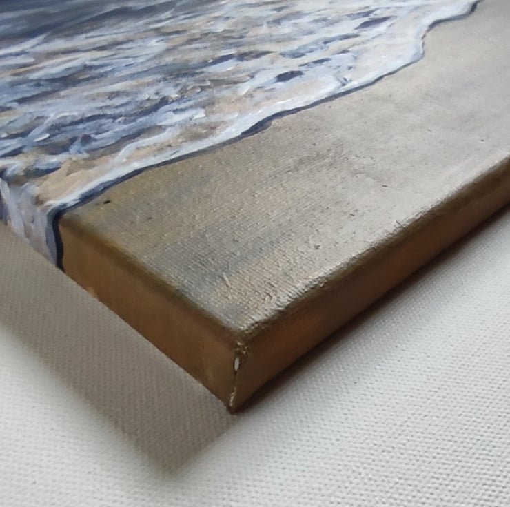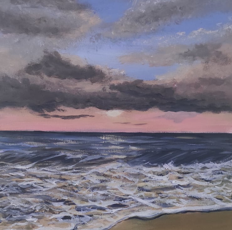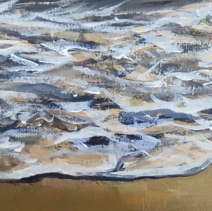 This painting is all about remembering early mornings on an almost deserted beach walking barefoot in the wet sand, there have been so many times where I've found myself starting the day like this. Hopefully this piece will also remind you of happy days running around on a beach or just taking the time to watch the sun coming up and starting another day.