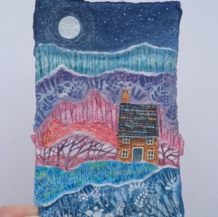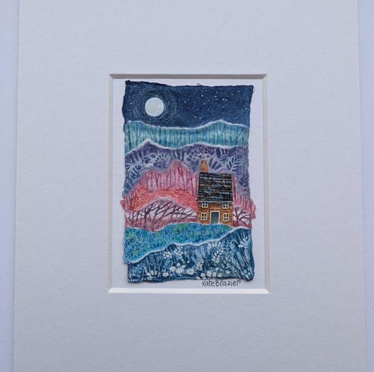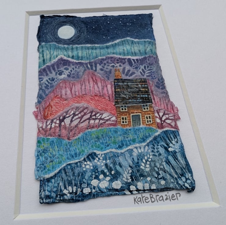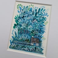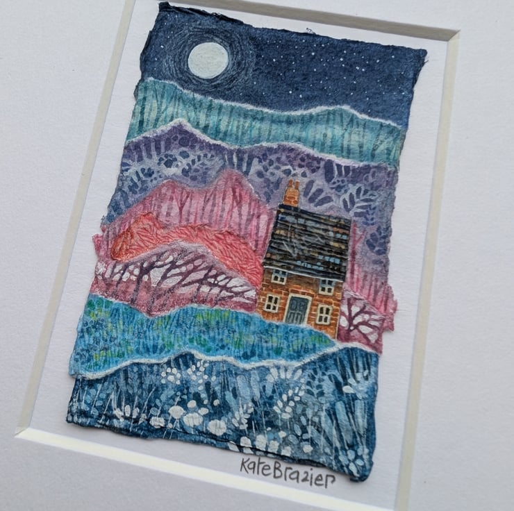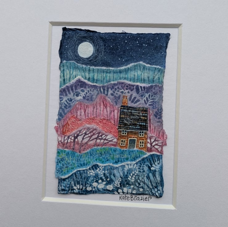 'Hope Cottage' is a tiny, mixed media collage float mounted into a custom A5 mount.