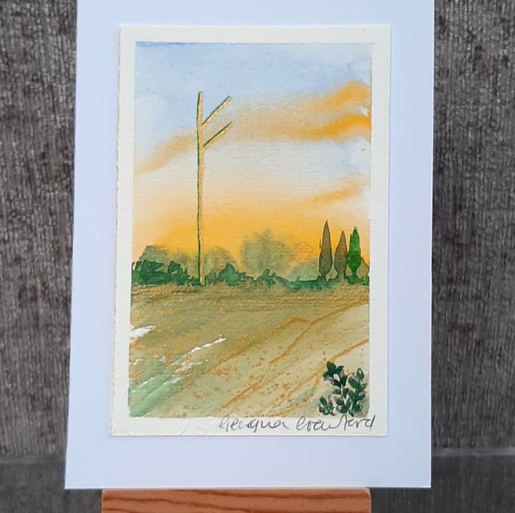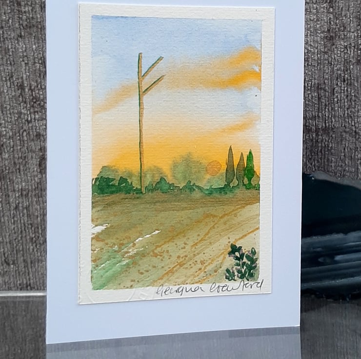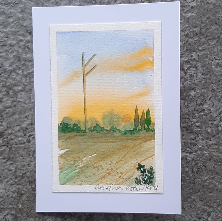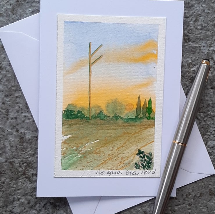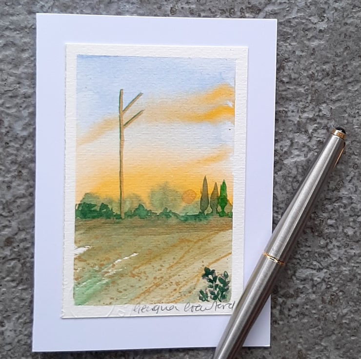 The card is 4 x 6 inches, signed by the artist and with my embossed maker's stamp in the bottom left corner. It is protected with two layers of satin varnish and supplied with a white envelope.